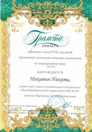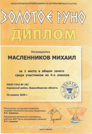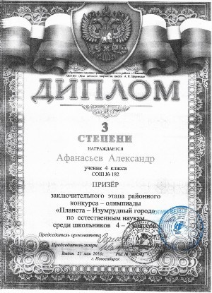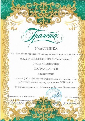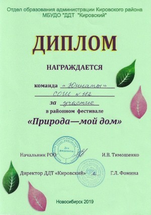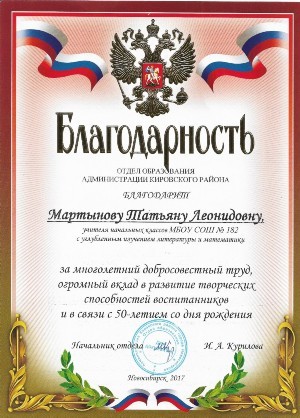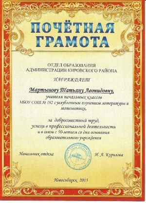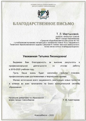 Награды: Благодарственное письмо департамента образования мэрии города Новосибирска, 2020 год |