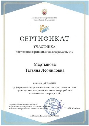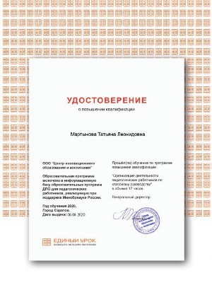 - Программа "Организация деятельности педагогических работников по классному руководству", ООО "Центр инновационного образования и воспитания", 2020 год
